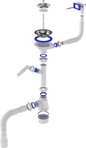 Сифон для мойки Металл-пластик, с выпуском 3 1/2х40, прямоугольный перелив, отвод для с/м, с гибкой трубой 40х40/50 AQUANT (арт. AB0147-20-MR)