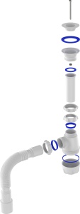 Сифон для мойки РВ0115 с пластик. решеткой 1 1/2 с гибкой трубой 40х40/50;Материал изделия: полипропилен, ПВХ, металл;