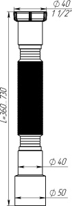 Гибкая труба 1 1/2х40/50, L-360-875 мм AQUANT (арт. Т103-85-MR)
