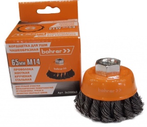 -----Кордщетка чашеобразная 65 мм витая жесткая (толщ. проволоки 0,5 мм) для УШМ Bohrer (арт. 36200065)